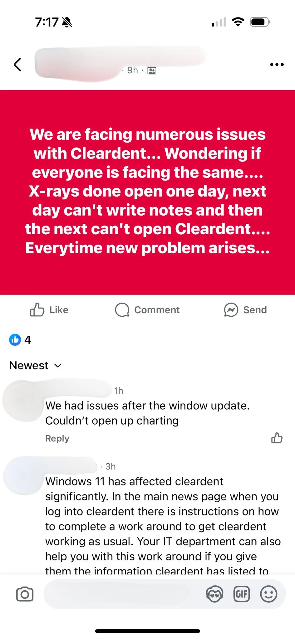 We’ve seen a surge of ClearDent instability reports... Clinics are facing charting errors, missing X-rays, and system freezes.
